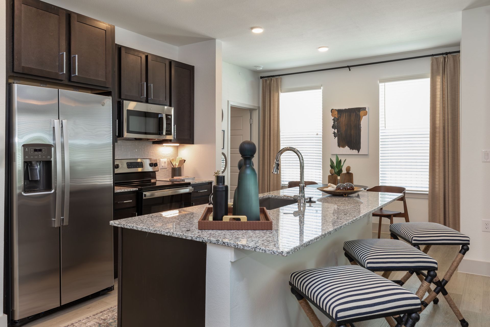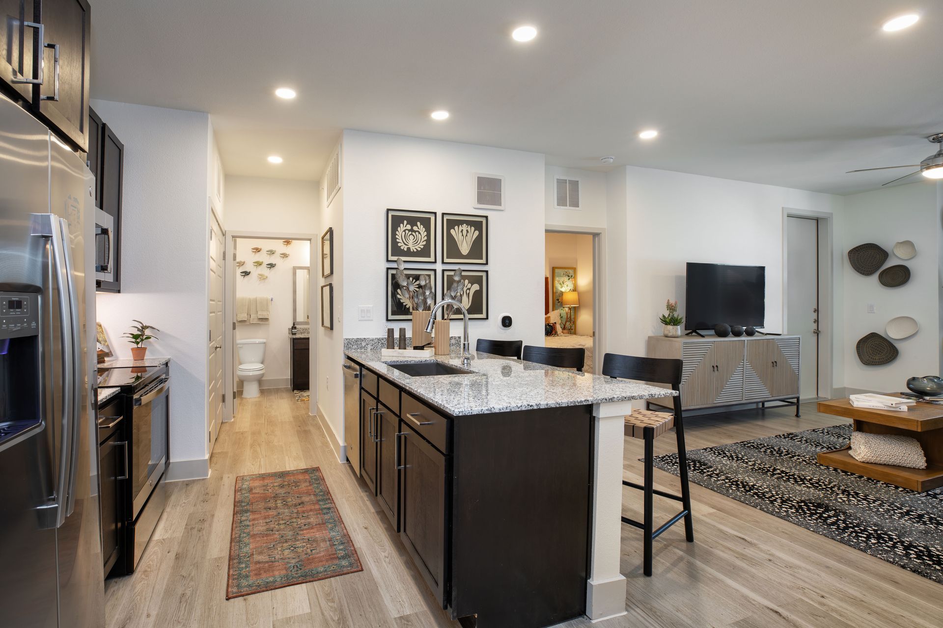 Experience EightyOne10 Blue Goose’s stylish studio, 1, 2, and 3-bedroom apartment homes, modern community amenities, and homey, Manor, Texas apartment living through our photo gallery.